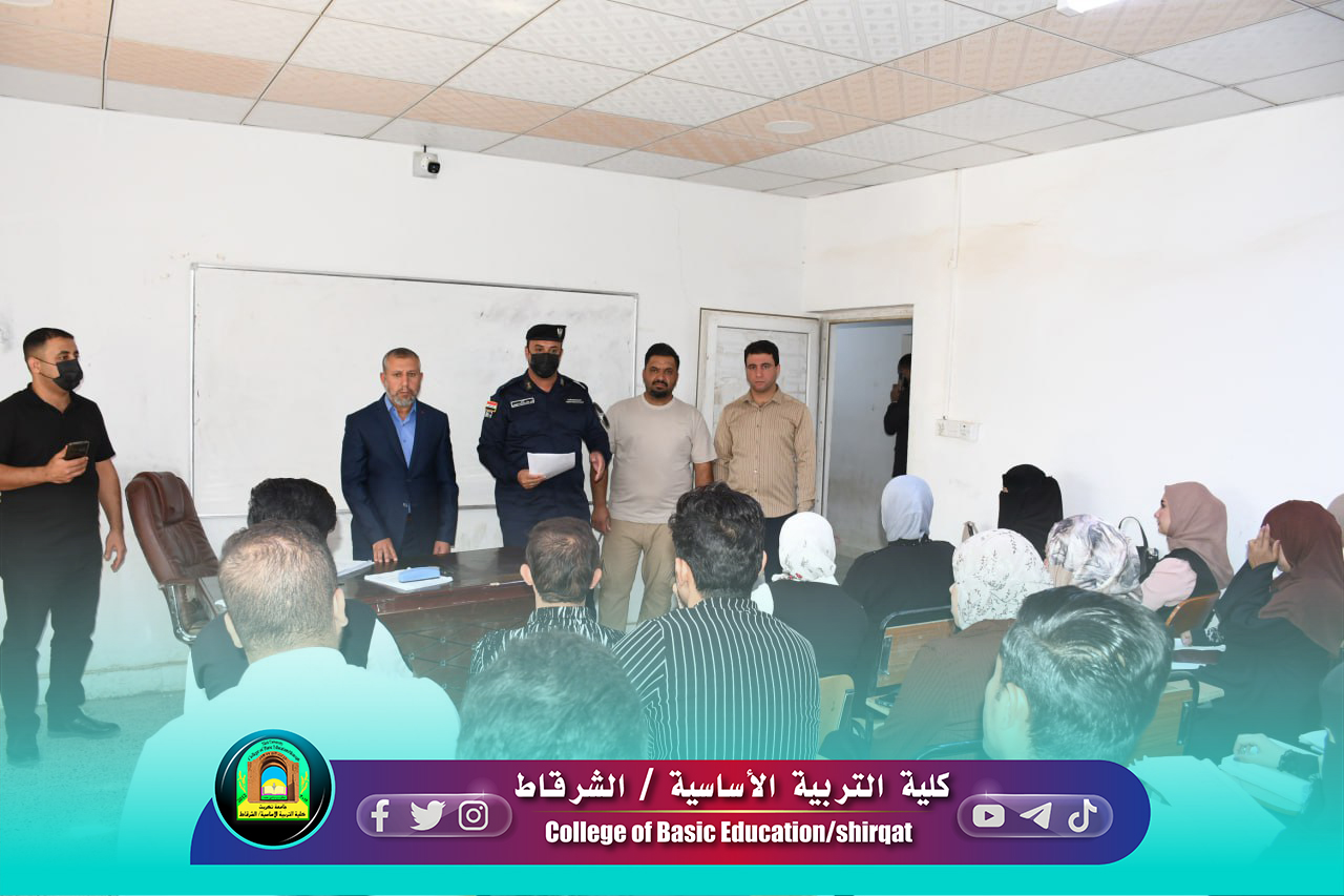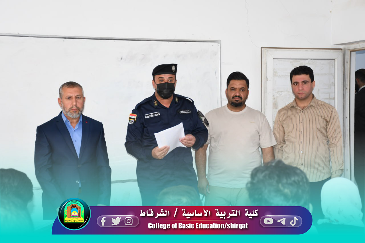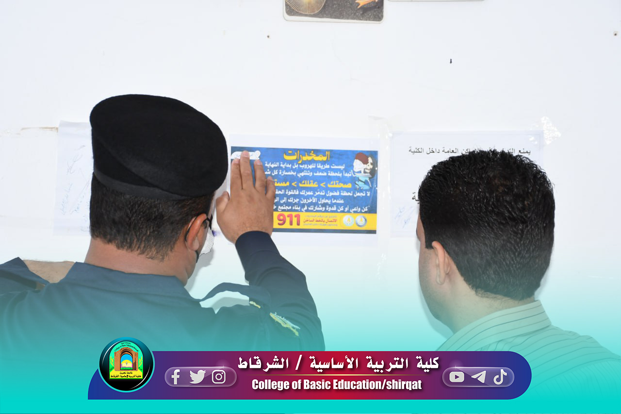 انطلاقاً من مبدأ التعاون المشترك بين المؤسسات الأكاديمية والجهات الأمنية، أقامت كلية التربية الأساسية / الشرقاط وبالتعاون مع قسم مكافحة المخدرات في قضاء الشرقاط حملة توعوية بعنوان ( المخدرات ليست طريقا للهروب بل بداية النهاية تبدأ بلحظة ضعف وتنتهي بخسارة كل شيء) في إطار تعزيز الوعي لدى الطلبة بأضرار المخدرات وآثارها السلبية على الصحة الجسدية والنفسية والاجتماعية وذلك من خلال توزيع بروشورات على الطلبة في جميع أروقة الكلية المختلفة .