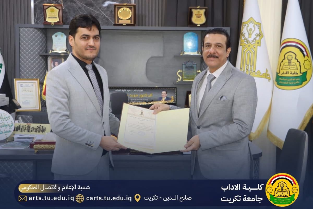 شارك المدرس الدكتور غسان محمد حسن التدريسي في قسم التربية الإسلامية في لجنة مناقشة رسالة ماجستير للطالب( عبدالله نايف حمد) عن رسالته الموسومة ((عبرة اولي الابصار في ملوك الامصار لأبن الاثير الحلبي (ت: ٦٩٩هـ/١٢٩٩م): دراسة في المنهج والموارد)) في جامعة تكريت، كلية الآداب وذلك يوم الاثنين الموافق 1/12/2025 ، وبعد مناقشة علمية مستفيضة، قررت اللجنة قبول الرسالة بتقدير (مستوفٍ).