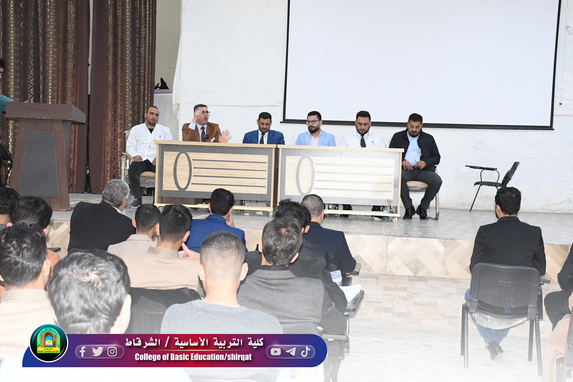 أقامت كلية التربية الأساسية الشرقاط بالتعاون مع قطاع الرعاية الصحية الأولية في الشرقاط، وحدة الصحة النفسية ووحدة الصحة المدرسية، ندوة علمية تحت عنوان:(القلق العلمي وآثاره السلبية والإيجابية في مسيرة الطالب الجامعي) يوم الأربعاء الموافق 3/12/2025 في قاعة الكلية، وقد شارك في الندوة مجموعة من المتخصصين المسؤولين في مجال الصحة النفسية والمدرسية من قطاع الرعاية، فضلا عن مشاركة وحضور عدد من رؤساء الأقسام العلمية وعدد من تدريسيي كليتنا.
