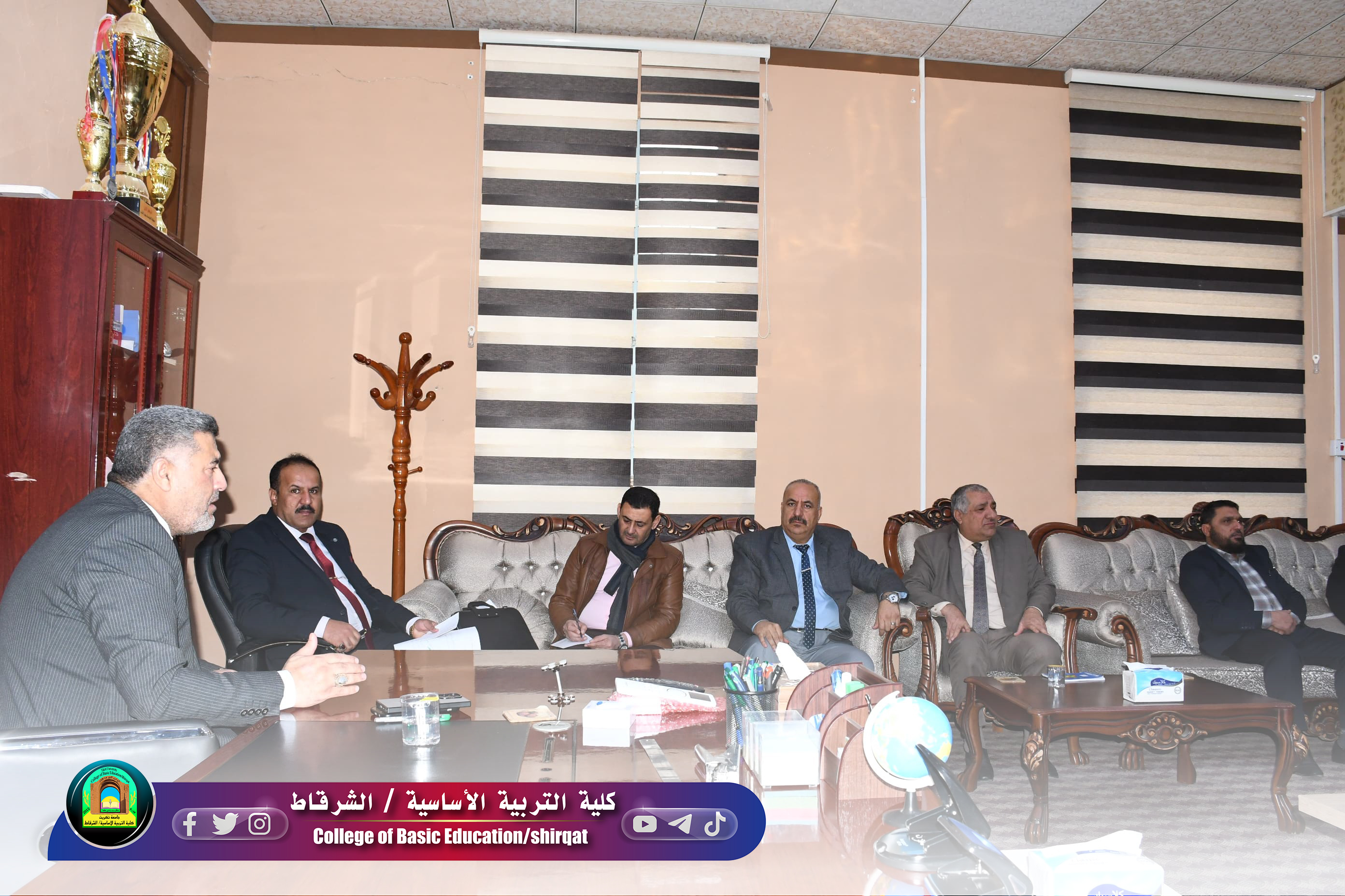 عقد مجلس كلية التربية الأساسية / الشرقاط جلسته الاعتيادية الثالثة للعام الدراسي 2025-2026 برئاسة السيد عميد الكلية الأستاذ الدكتور حسين عبد إسماعيل المحترم وبحضور السادة امين المجلس والمعاونين العلمي والإداري ورؤساء الأقسام وخلال الجلسة ناقش المجلس بعض القضايا التي تخص الطلبة والتأكيد على الالتزام بالزي الموحد للطلبة وضرورة التزام الكادر التدريسي بعدد الحصص المقررة وفقاً للتعليمات النافذة لضمان تغطية المناهج الدراسية بانسيابية وعدالة في توزيع الأعباء التدريسية، بالإضافة إلى تشكيل اللجان الدائمة والمؤقتة للعام الدراسي الجديد وفي ختام الجلسة، اتخذ المجلس التوصيات والقرارات اللازمة بشأن البنود المدرجة على جدول اعماله، مؤكداً على ضرورة الالتزام بالتعليمات الوزارية والسعي المتواصل للارتقاء بالمستوى العلمي والإداري للكلية.