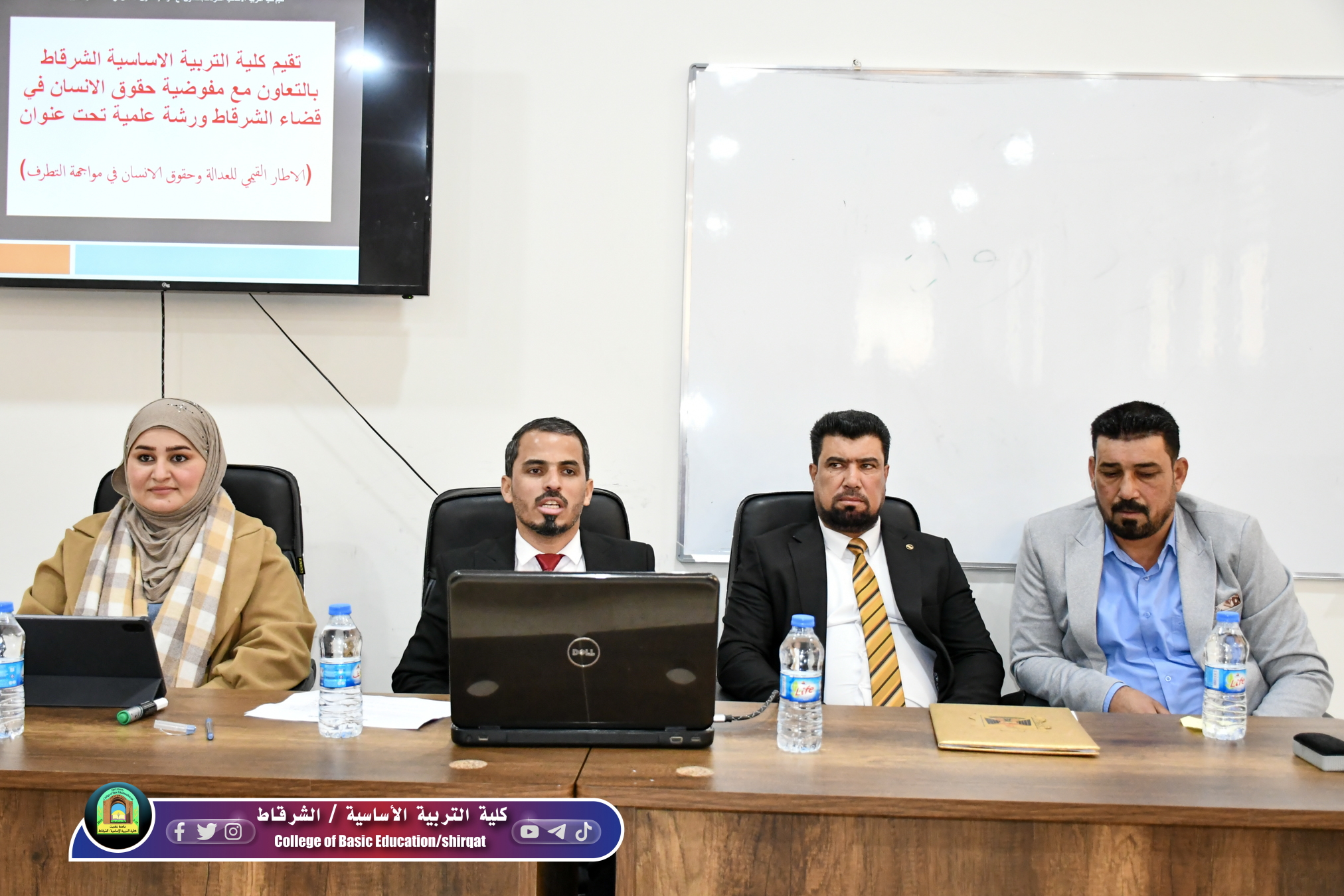 برعاية الأستاذ الدكتور وعد محمود رؤوف رئيس جامعة تكريت وبإشراف الأستاذ الدكتور حسين عبد إسماعيل عميد الكلية أقامت وحدة شؤون المرأة في كلية التربية الأساسية / الشرقاط وبالتعاون مع مفوضية حقوق الانسان في قضاء الشرقاط ومركز التعليم المستمر ندوة علمية بعنوان ((الاطار القيمي للعدالة وحقوق الانسان فى مواجهة التطرف)) اليوم الاحد الموافق 8/2/2026 وقد حاضر في الندوة كل من.