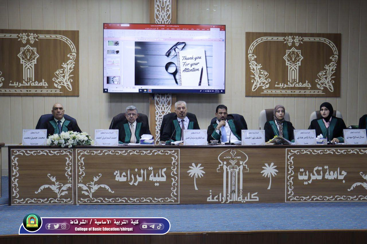 شارك الأستاذ الدكتور محمد جميل محمد احد تدريسي قسم العلوم في كليتنا عضوا ومشرفا في لجنة مناقشة أطروحة الدكتوراه للطالبة رواء قيس قاسم نعمة بعنوان ((التقييم الكيميائي والمايكروبي لأغذية الأطفال المتداولة في الأسواق المحلية)) في قسم علوم الأغذية بكلية الزراعة - جامعة تكريت وفي ختام المناقشة العلمية المستفيضة، قررت اللجنة منح الطالبة شهادة الدكتوراه