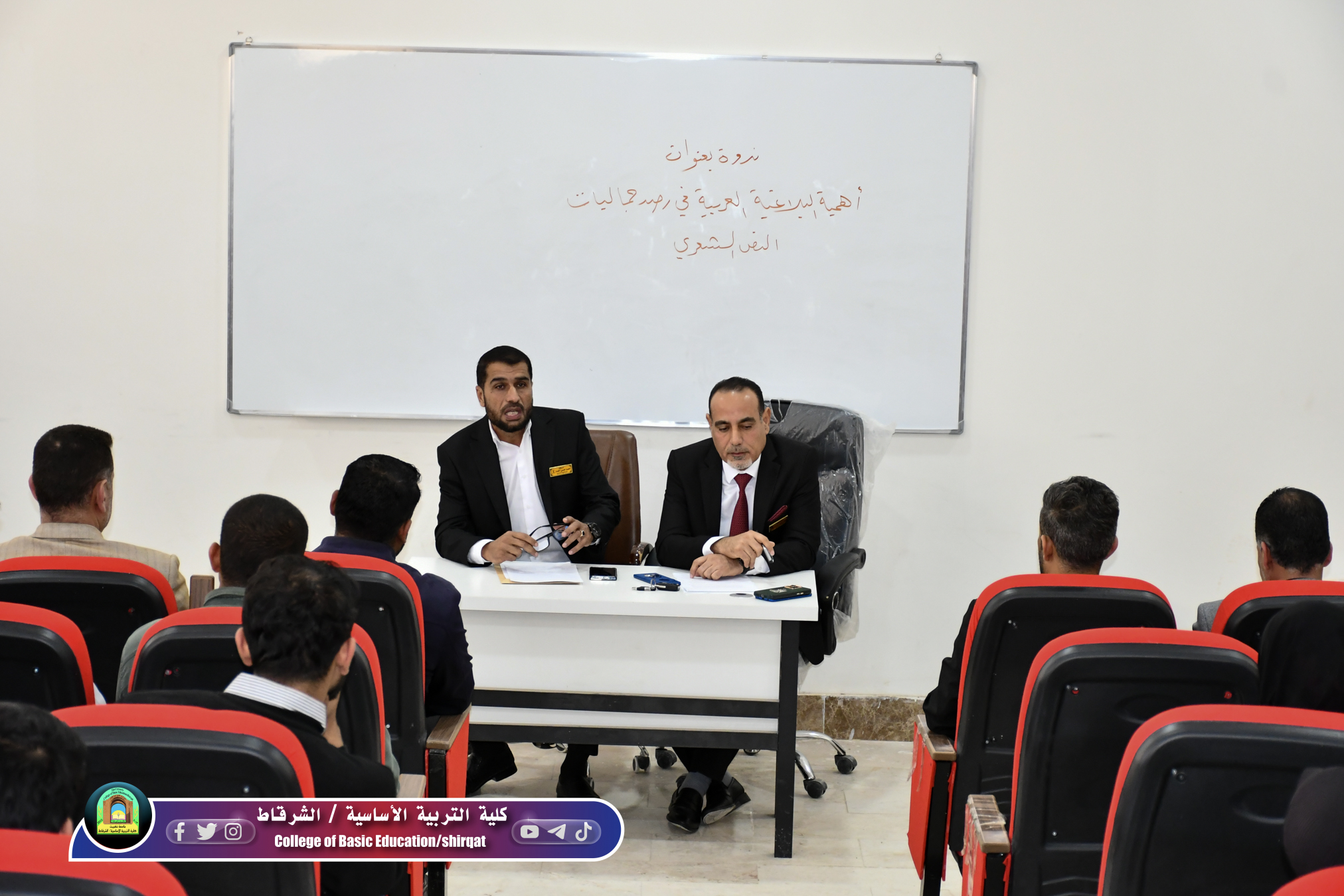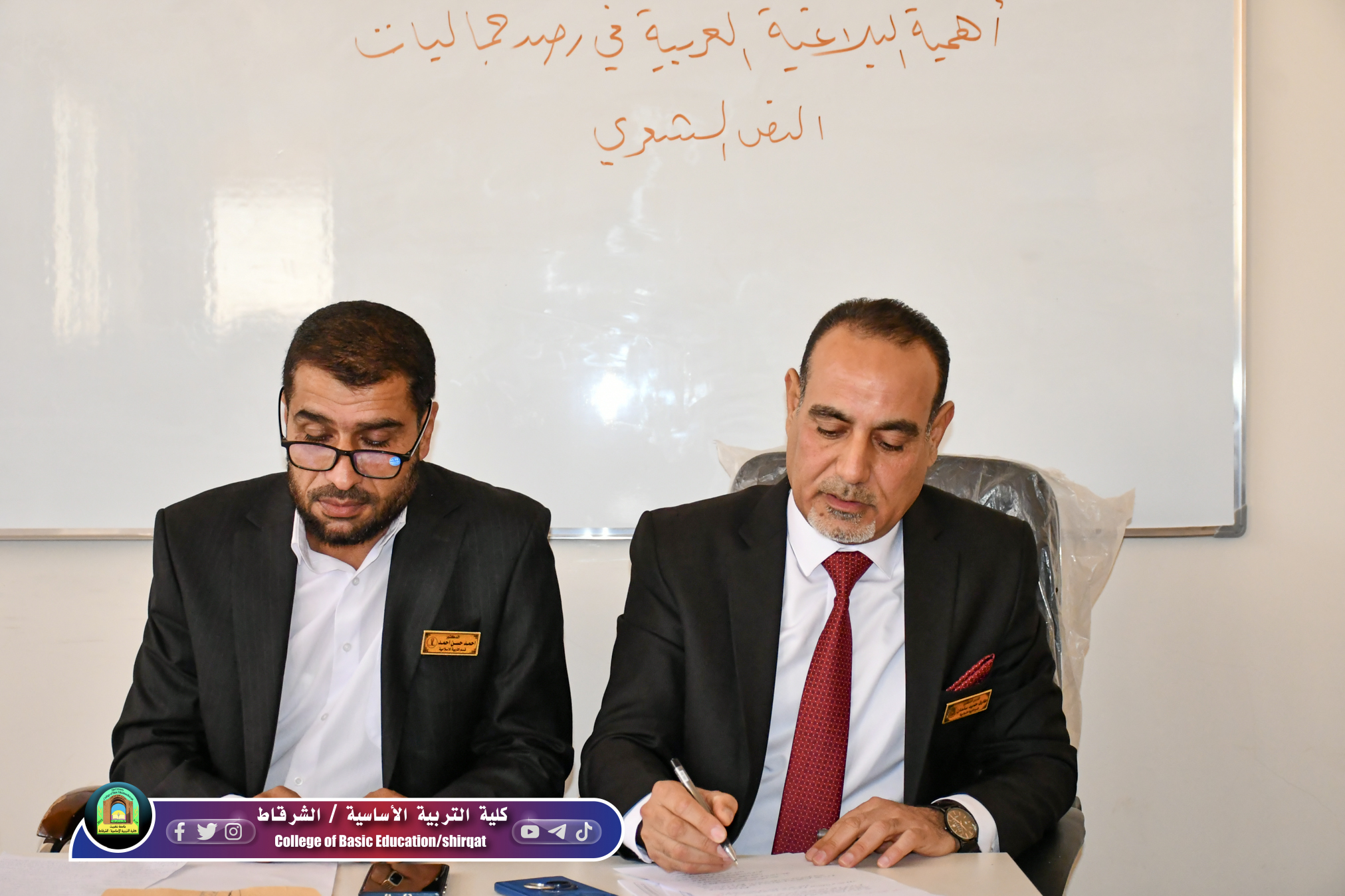 برعاية الأستاذ الدكتور وعد محمود رؤوف رئيس جامعة تكريت وبإشراف الأستاذ الدكتور حسين عبد إسماعيل عميد الكلية أقامت كلية التربية الأساسية / الشرقاط وبالتعاون مع مركز التعليم المستمر ندوة علمية بعنوان ( أهمية البلاغة العربية في رصد جماليات النص الشعري) اليوم الخميس الموافق 26/2/2026 وبحضور عدد من تدريسيي وطلبة الكلية وقد حاضر في الندوة كل من.
