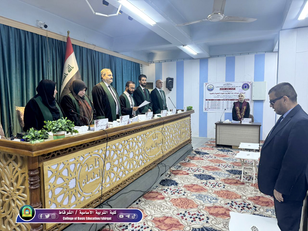 شارك الأستاذ المساعد الدكتور مراد عبد حسن أحد تدريسي قسم اللغة العربية في عضوية لجنة مناقشة أطروحة دكتوراه للطالبة (آثار عمر عادل) في رحاب جامعة بغداد / كلية العلوم الإسلامية / قسم اللغة العربية اليوم الاحد الموافق 1/3/2026 عن اطروحتها الموسومة: (الدكتور عبد الله جاد الكريم وجهوده النحوية واللغوية) وبناءً على ما دار في أروقة المناقشة من طروحات علمية رصينة استقرت اللجنة على إجازة الاطروحة ومنح الطالبة الشهادة العلمية بعد إتمام الملاحظات المقترحة. وتأتي مشاركة الدكتور في هذه اللجنة كترجمةٍ عملية لسياسة التعاون المعرفي بين المؤسسات الجامعية وخطوةً لتعزيز العمل الأكاديمي المشترك مما يساهم في تبادل الرؤى البحثية ورفع كفاءة المخرجات العلمية بين الجامعات العراقية . سائلين المولى عز وجل له دوام التوفيق والسداد، ومزيداً من العطاء والرفعة في مسيرته العلمية والمهنية